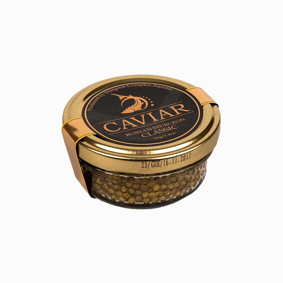 Experience the mild, buttery flavor of Classic Russian Sturgeon Caviar from AQUATIR farm. This sturgeon caviar (packed in 1.8 oz metal tin or glass jar) is farmed in pristine environments and carefully selected to deliver a high-end taste and texture.