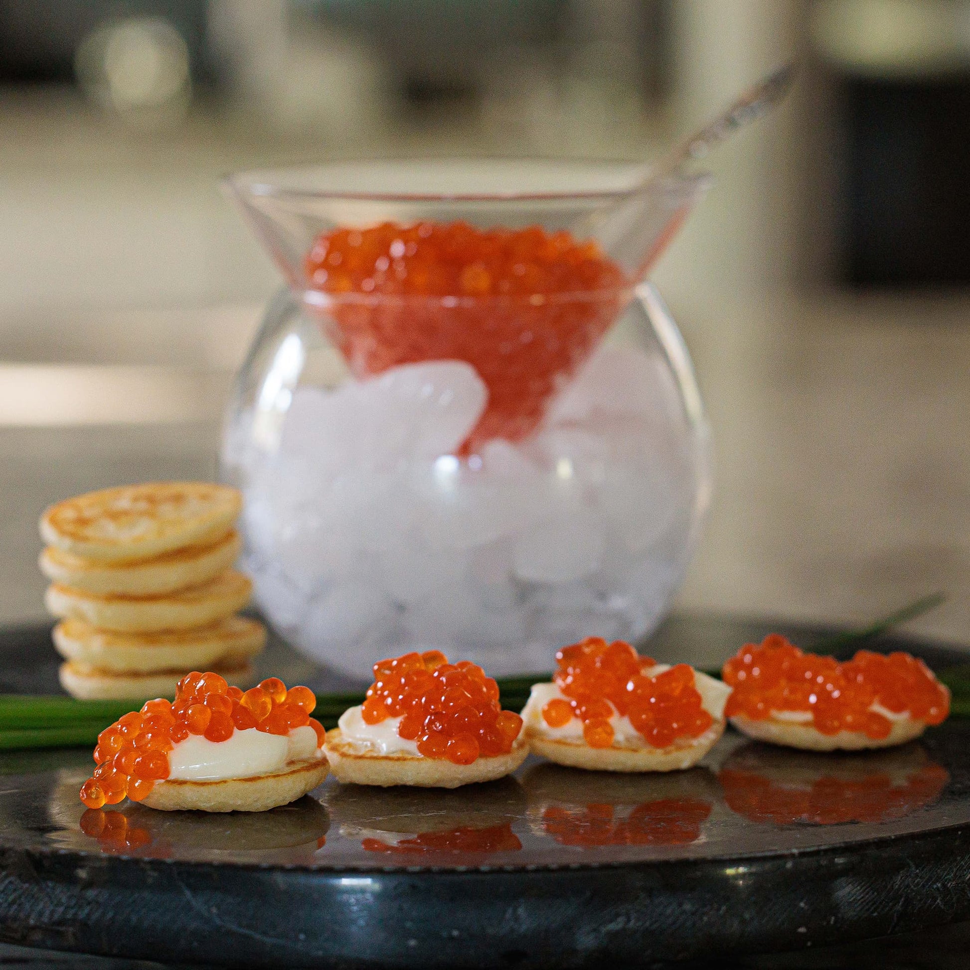 These delicate, French-style mini blini offer a mild flavor and soft, satisfying texture, making them the perfect complement to sturgeon or salmon caviar. Serve them topped with luxurious caviar and a touch of butter for an elegant and unforgettable presentation.